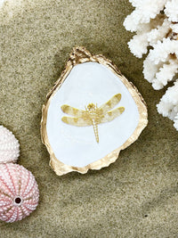 Gold Dragonfly Oyster Trinket Dish