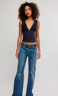 Features: V- neck front design with lace shoulders that cover the bust and flow into a stretchy micro rib mid section.