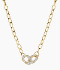 Featuring two shimmering interlocking links at the center, this 17" gold-plated chain is designed to sit perfectly at your collarbone, making it the ultimate statement piece for day or night. Wear the Lou Shimmer Interlocking Necklace solo or layer it with delicate chains for a more dimensional look. Whether you’re dressing up a tee or finishing off your holiday party outfit, this necklace brings style to any outfit.