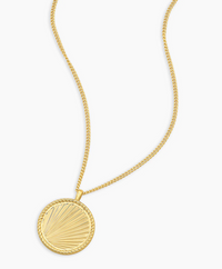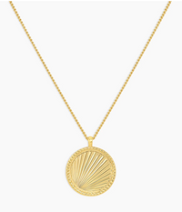 The Sunny Pendant Necklace is the perfect piece to make any layer shine. Crafted with beautiful etched detailing, this necklace looks great on its own or layered with shorter chains for a bolder look.