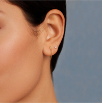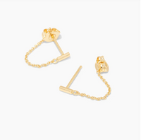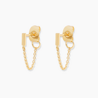 These small huggie earrings feature a dainty chain and bar stud inspired by our best-selling Tatum Necklace. We love to wear the Tatum Chain Huggies in our first piercings and complete the look with dainty diamond studs. Love a matching moment? Style your Tatum Chain Huggie earrings with other coordinating pieces from the Tatum Collection.