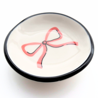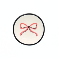 Salmon pink ribbon bow outlined in black. Just like our beloved pastel pink bow—but with a extra pop! Newly Designed petite ring dish!
