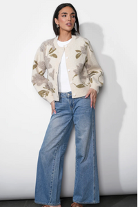 Featured with an Ivory base, this cardigan is distinguished by an appealing floral pattern, often woven or embroidered, that adds a touch of color and whimsy. The "Cozy" nature suggests it's made from a soft, warm knit material. It typically features an open-front or button-up design and a relaxed fit, making it the perfect piece to throw on for instant style and comfort.