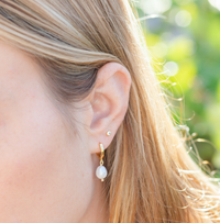 Elevate your style with these chic Small Pearl Huggies! Fresh Water Pearls on gold plated huggie are you sure to be your next go-to earrings. 1" Drop 18k Gold Plated Brass Base Fresh Water Pearl